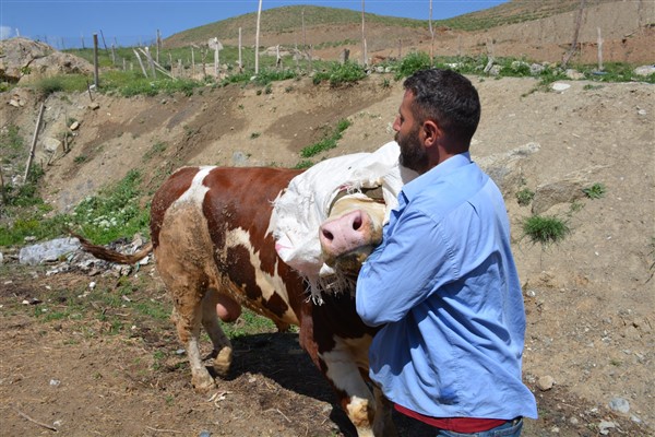 Karagöz, "Bu hayvanı özel besledim. 1 ton ağırlığı var. 25-30 kilogram kemik çıkar. Gerisi yağsız et. 130 bin liradan alıcısını bekliyoruz. 500 kadar küçükbaş hayvanım da Kurban Bayramı için hazır." dedi.