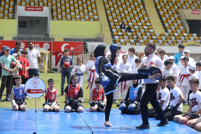 Konuşmanın ardından, yapılan cimnastik, karete, güreş ve muay thai gösterisi büyük beğeni toplandı.
