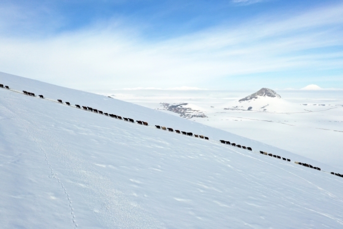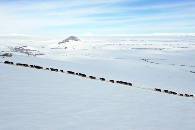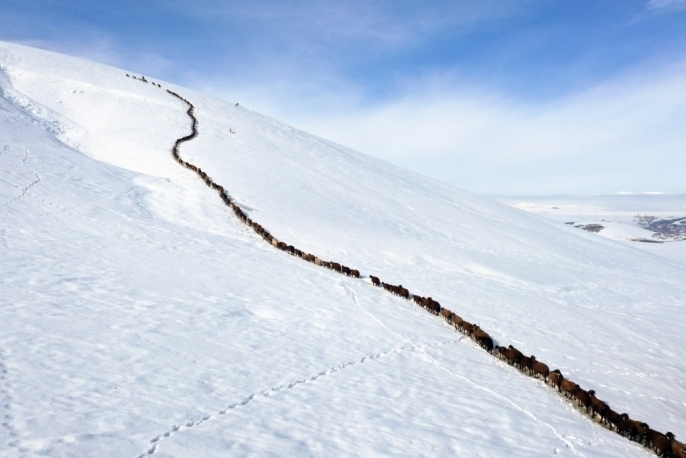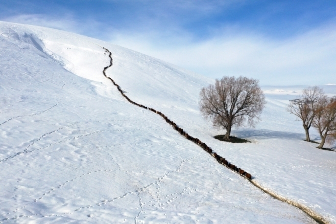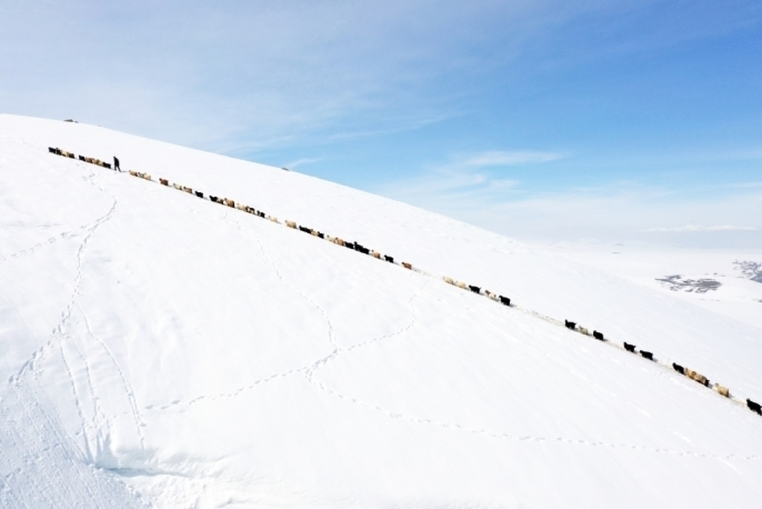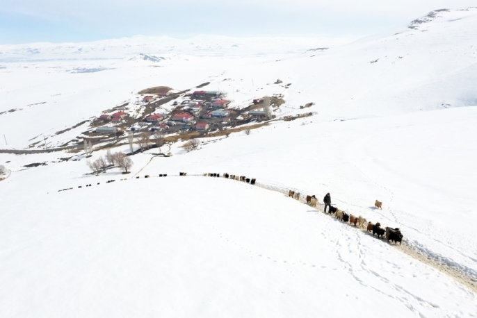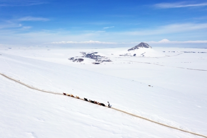 Kış mevsiminin çetin geçtiği bölgede, mart ayının sonuna yaklaşılmasına rağmen dağlar ve tepeler karla kaplı. Baharın gecikmesi, hayvancılıkla geçimini sürdüren vatandaşlar için işleri daha da zorlaştırıyor. Erken saatlerde, besiciler hayvanlarını karla kaplı dağlar arasında beslenme alanlarına yönlendiriyor.