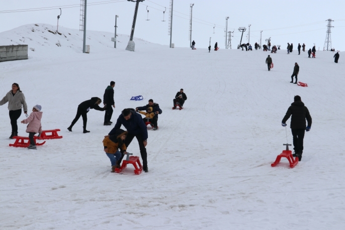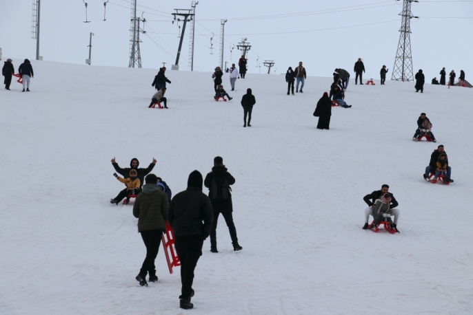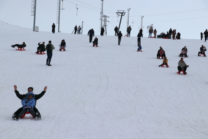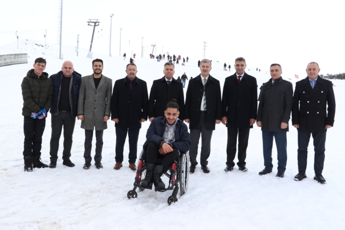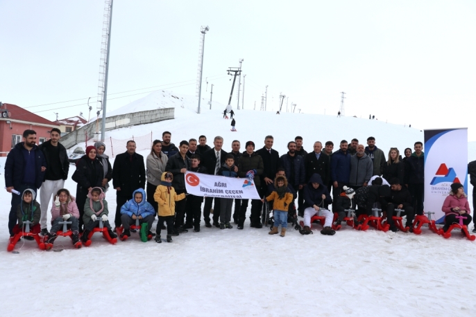 Ağrı'da engelleri aşan yüzücü çocuklar kayak keyfi yaşadı