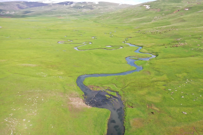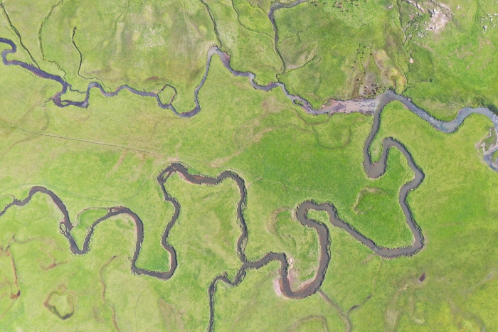 Bulunduğu ovalara can suyu veren menderesler, dronla görüntülendi.