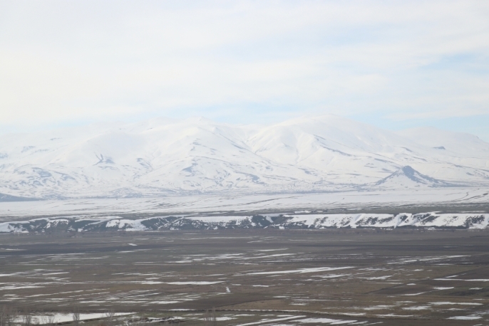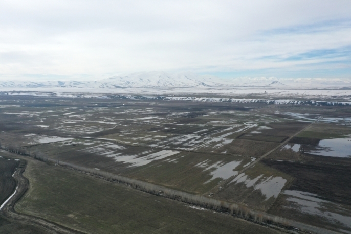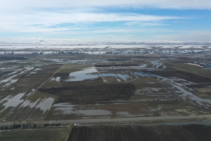 Ağrı Ovası'nda karlar erimeye başladı, dronla görüntülendi