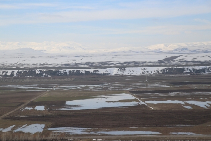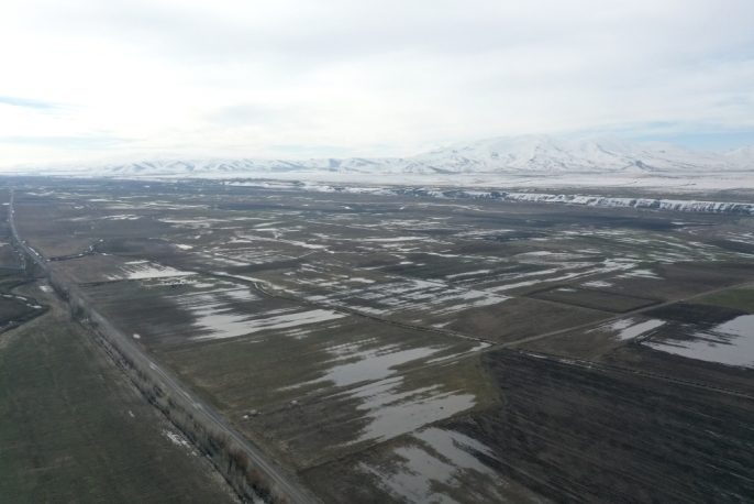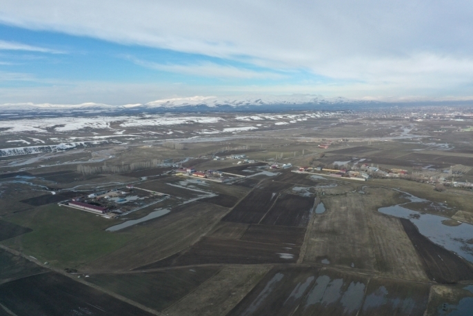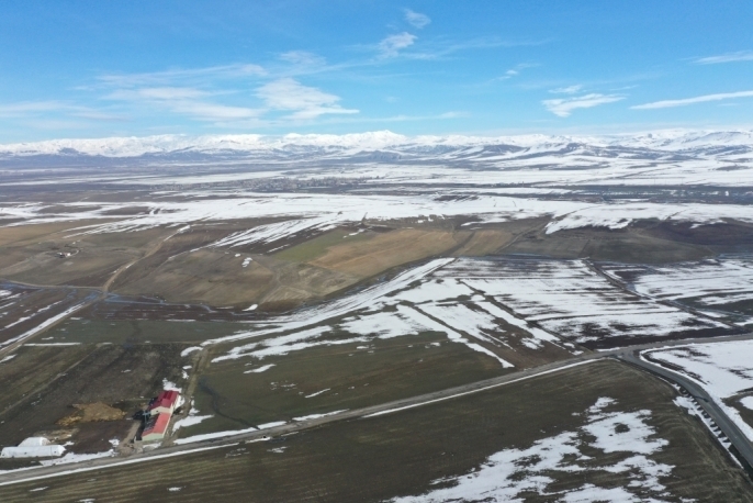 Yağışların ardından ova ve çevredeki dağlardaki kar örtüsü erimeye başladı. Geniş bir alana yayılan ovada karların erimeye başlaması, göz alıcı manzaraların oluşmasına neden oldu. Dronla çekilen görüntüler, karların kısmen eridiği dağlar ile tarım arazilerini gözler önüne serdi.