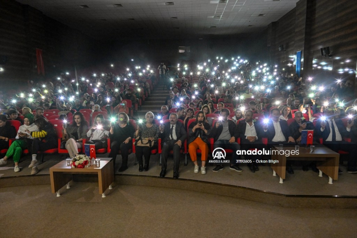 Bazı şarkıların seslendirildiği sırada depremlerde zarar gören illerden görüntülerin yer aldığı slayt gösterisi dinleyicilere duygusal anlar yaşattı.