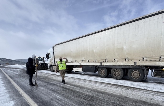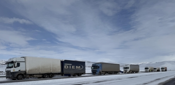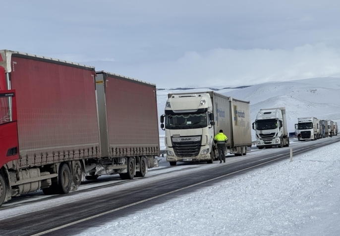 Ardahan'da buzlanma tırları yolda bıraktı, 16 araç kurtarıldı