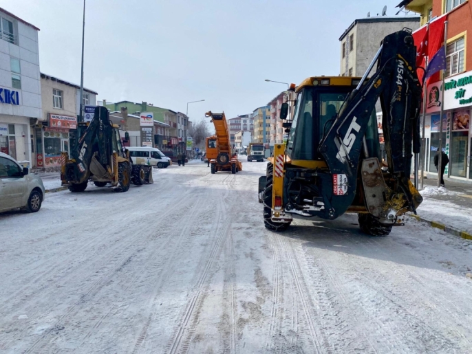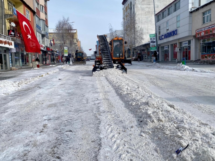 Ardahan'da etkili olan kar yağışı ve dondurucu soğuklar nedeniyle belediye ekipleri hummalı bir çalışmayla cadde ve sokakları temizliyor.