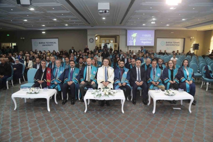 Bursa Teknik Üniversitesi'nde (BTÜ) yüksek lisans ve doktora öğrencileri için mezuniyet töreni düzenlendi. 449 mezunun keplerini attığı tören, Mimar Sinan Yerleşkesi Turkuaz Salon'da gerçekleşti. Törene BTÜ Rektörü Prof. Dr. Naci Çağlar, Rektör Yardımcısı Prof. Dr. Beyhan Bayhan, akademisyenler, mezunlar ve aileleri katıldı.