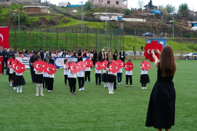 Derecik'te 23 Nisan coşkusu: Çocuklar sahnede, ödüller havada uçuştu