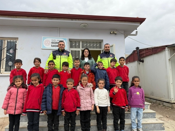 Doğanşehir İlçe Jandarma Komutanlığı'na bağlı trafik timleri, Güzelköy İlkokulu ve Ertuğrul Gazi İlkokulu'nda eğitim gören öğrencilere trafikte dikkat edilmesi gereken önemli kuralları aktardı.