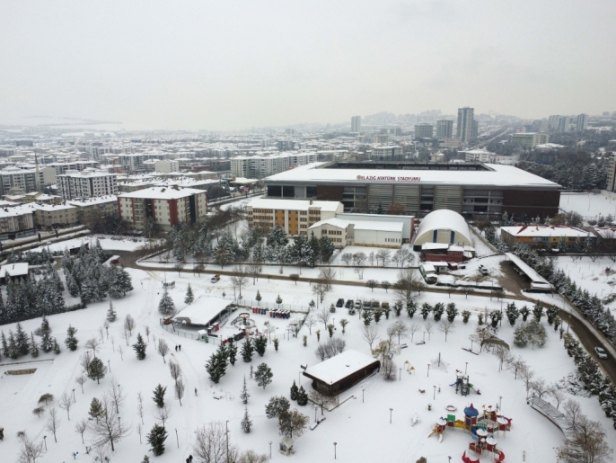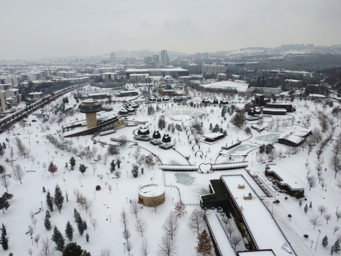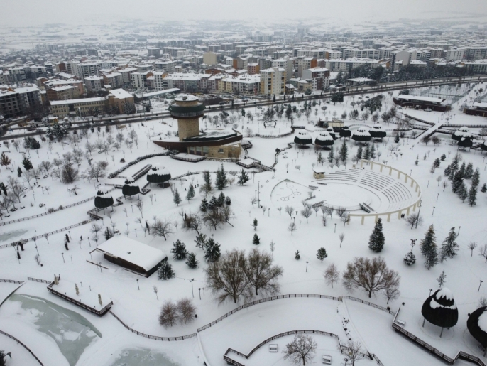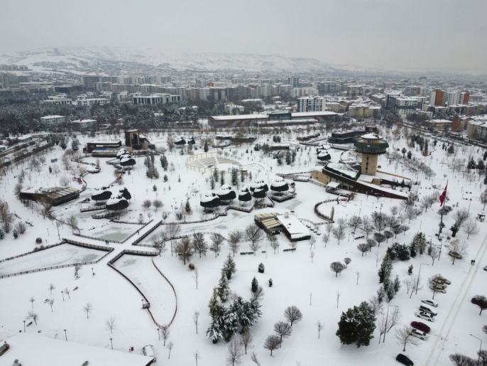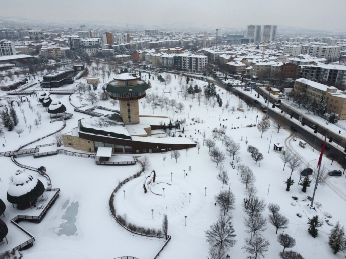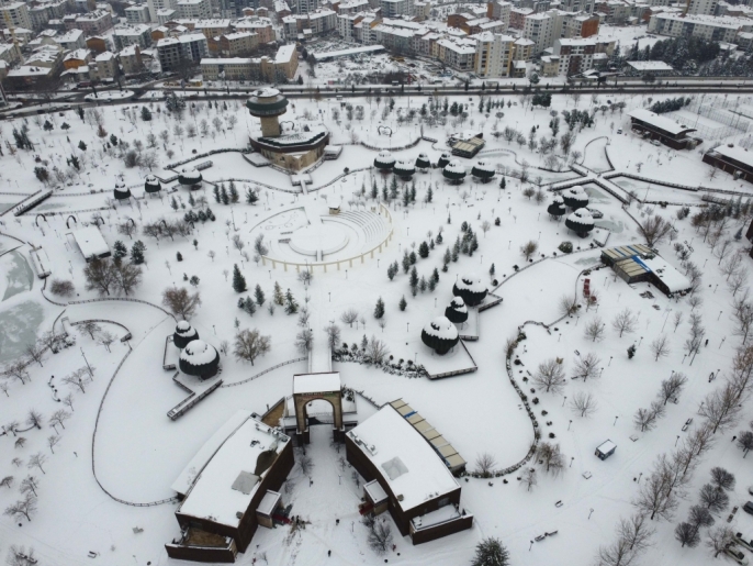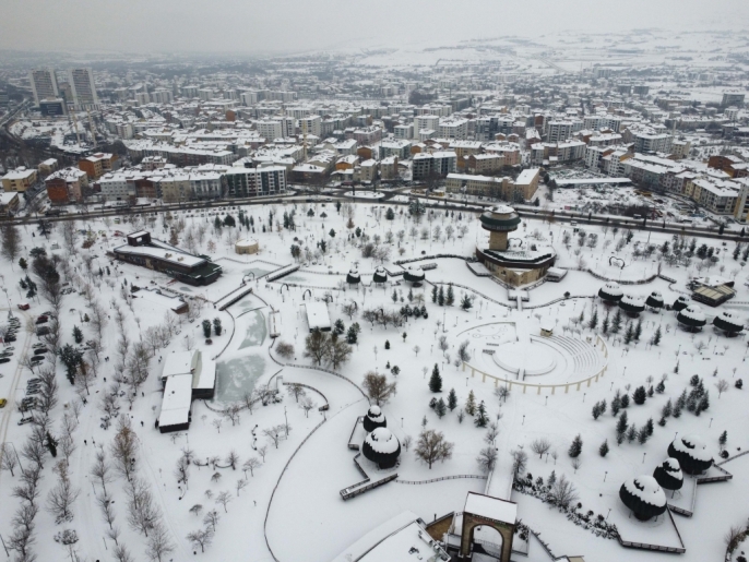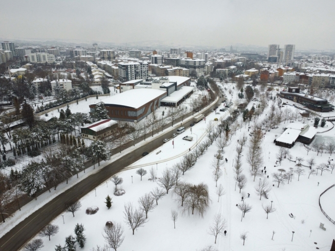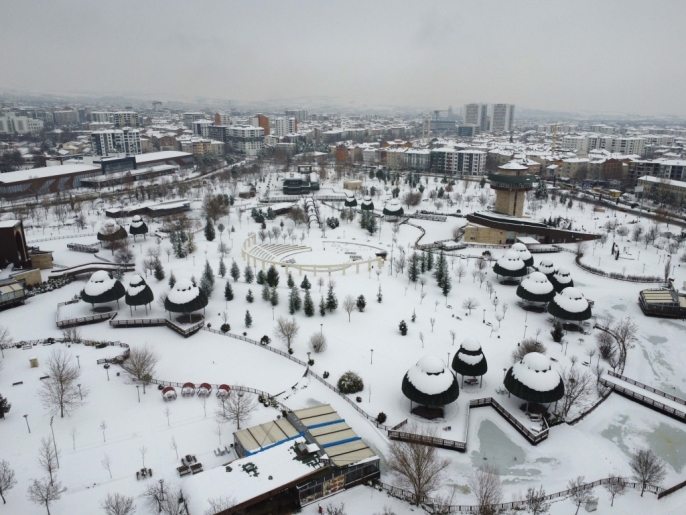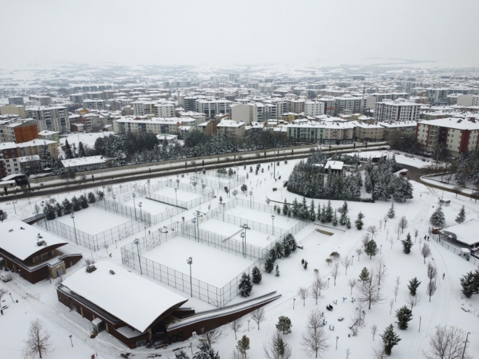 Karla kaplı parklar ve yerleşim alanları, dron ile yapılan çekimlerle havadan görüntülendi. Bu sayede, karın şehre kattığı eşsiz güzellik gözler önüne serildi.