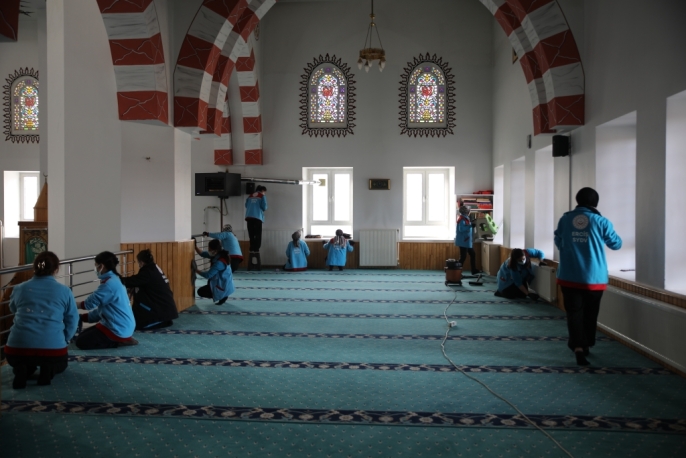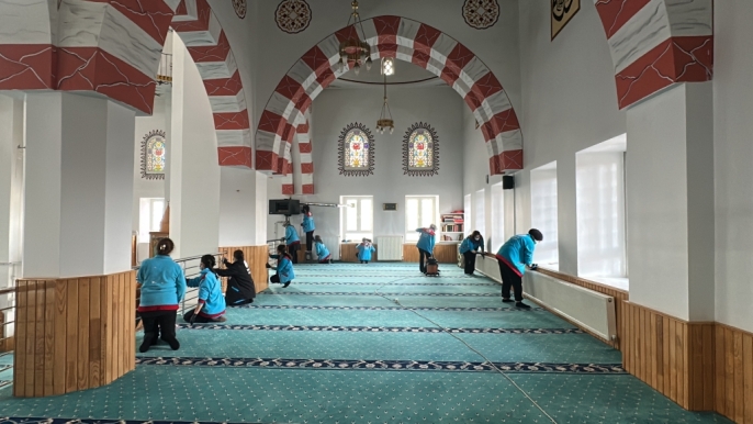 30 kişilik bir ekip, ilçe genelindeki camilerin iç bölümleri, avluları, abdesthaneleri ve çevresini titizlikle temizledi. Çalışmalar kapsamında cam silme, yer süpürme ve toz alma gibi işlemler gerçekleştirildi.