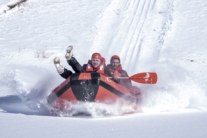 Yemleme etkinliğinin ardından, katılımcılar yüzeyi tamamen donmuş olan Söğütlü Göleti'ne geçti. Burada Vali Çiftçi'nin de katıldığı 'kar raftingi' yapıldı ve göletin üzerinde çeşitli ikramlarla keyifli anlar yaşandı. Erzurum Macera Off-Road Doğa Sporları Kulübü Başkanı Lokman Toptaş, dağdan yaklaşık 60 kilometrelik bir hızla göletin üzerine kaydıklarını anlatarak etkinliğin heyecanını paylaştı.