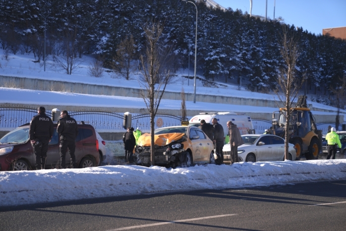 M.S.C. idaresindeki 25 EY 427 plakalı araç, K.K. yönetimindeki 25 TT 070 ve İ.E. idaresindeki 25 TT 631 plakalı iki taksi ile çarpıştı. Çarpmanın etkisiyle taksilerden biri refüje çıkarak bir ağaca çarptı ve durabildi. Kazada her üç aracın sürücüsü de yaralandı.