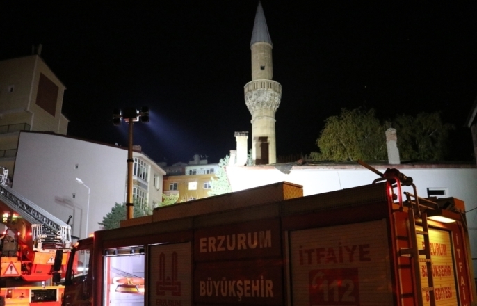 Erzurum'da, 18. yüzyıldan kalma Aşağı Mumcu Camii'nin çatısında çıkan yangın, itfaiye ekiplerinin hızlı müdahalesi sonucu söndürüldü.