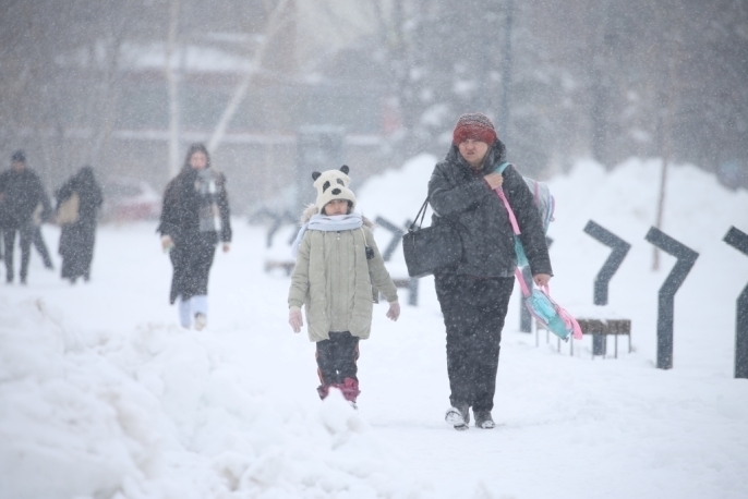 Kars'ta dün başlayan kar yağışı, kent merkezini beyaza bürüdü. Vatandaşlar işlerine ve öğrenciler okullarına giderken, karlı yollarda yürümekte zorluk çekiyor. Sarıkamış ilçesinde etkili olan yoğun kar yağışının ardından, belediye ekipleri kar temizleme çalışmasına başladı. Kar kalınlığının 1,5 metreyi aştığı ilçede, ana caddelerdeki kar yığınları araç ve yaya trafiğinde aksamalara yol açıyor. Sarıkamış Belediyesi, Fen İşleri Müdürlüğüne bağlı ekiplerle birlikte kar temizleme çalışmalarını hızlandırdı.