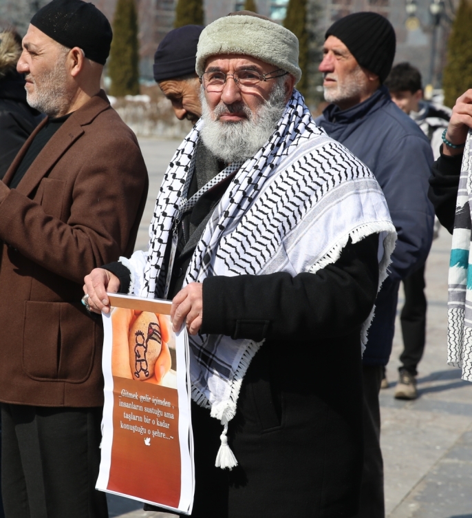 Erzurum Sivil Toplum Platformu (ESTP) öncülüğünde toplanan kentteki STK'ler, cuma namazının ardından Lalapaşa Camisi avlusunda bir araya gelerek hem Gazze'deki mazlumlara hem de Özgürlük ve Sumud Filosu'na desteklerini gösterdiler.