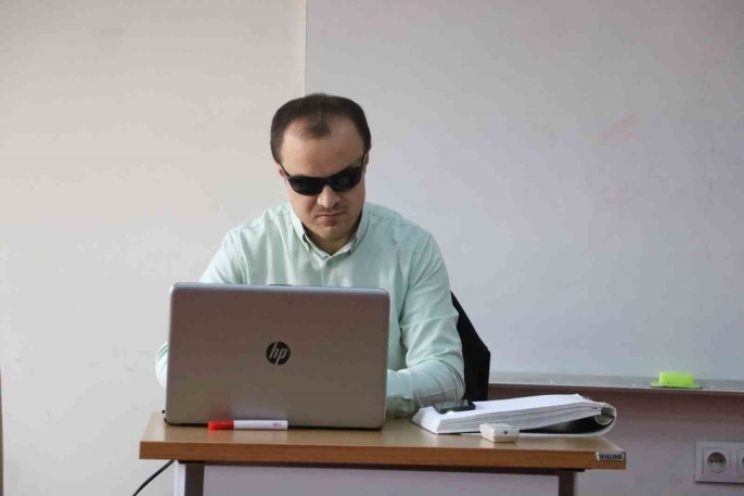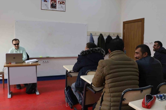 Sivas Halk Eğitim Merkezi'nde görev yapan görme engelli öğretmenler Selman Devecioğlu ve Hayri Yılmaz, mesleklerini büyük bir azim ve sevgiyle sürdürüyor. Öğrencileriyle göz teması kuramasalar da kurdukları gönül bağı sayesinde eğitim-öğretim hizmetlerini hiçbir engelle karşılaşmadan gerçekleştiriyorlar.