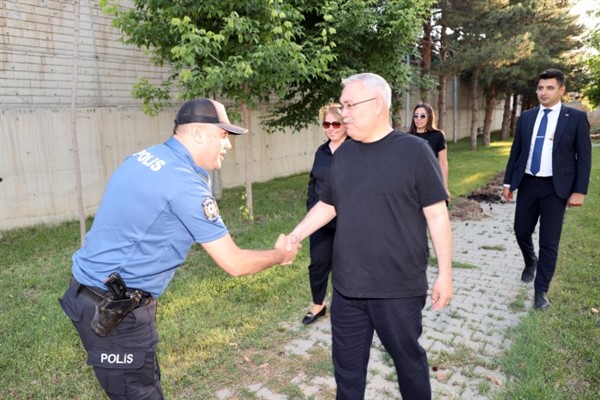 Çeşitli bayram kutlama programı ve ziyaretlerde bulunan Vali Doç. Dr. İlker Gündüzöz ve eşi Doç. Dr. Meşide Gündüzöz, görevi başındaki polis memurlarını da unutmadı. Nöbet noktalarında görevli polis memurlarını ziyaret ederek, bayramlarını tebrik eden Gündüzöz çifti, görevlerinde kolaylıklar diledi.