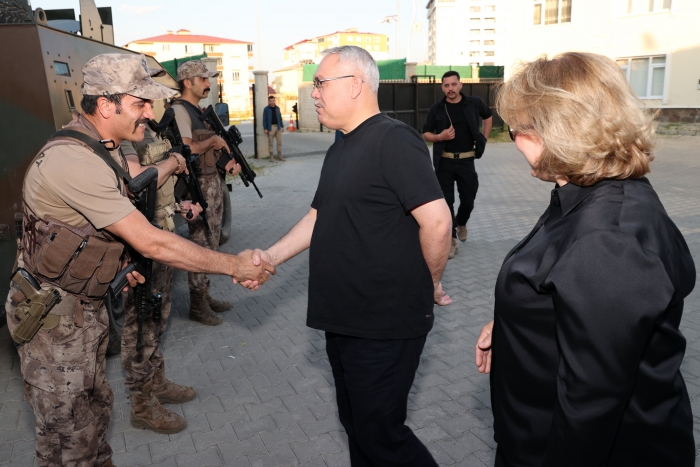 Vali Doç. Dr. İlker Gündüzöz, eşi Doç. Dr. Meşide Gündüzöz ile birlikte, mesai kavramı gözetmeksizin vatandaşlarımızın huzur ve güvenliğini korumak için görev yapan kahraman polisleri nöbet noktalarında ziyaret ederek, bayramlarını tebrik etti.