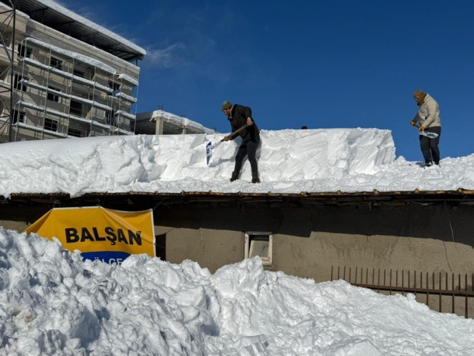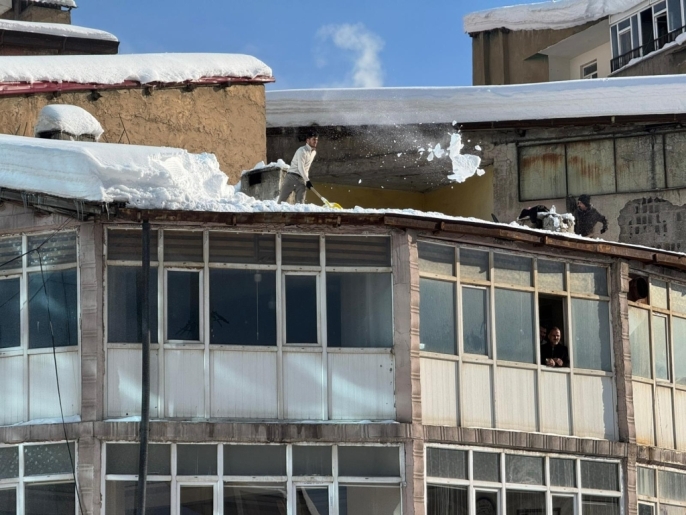 Hakkari'nin Yüksekova ilçesinde yoğun kar yağışı sonrası vatandaşlar, ev ve iş yerlerinin çatılarında biriken karı temizleyerek çökme riskine karşı önlem aldı. İlçede kar kalınlığı yarım metreye ulaşırken, cadde ve sokaklarda karla mücadele çalışmaları tüm hızıyla sürüyor.
