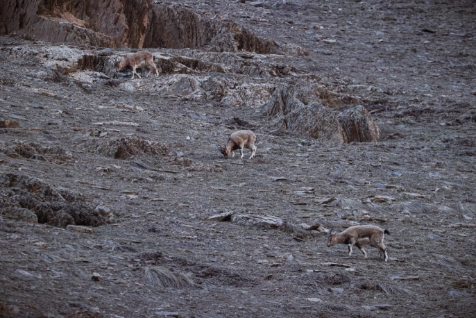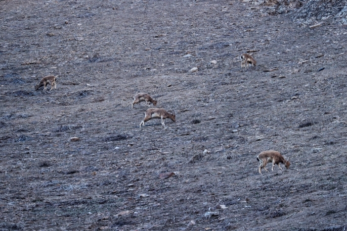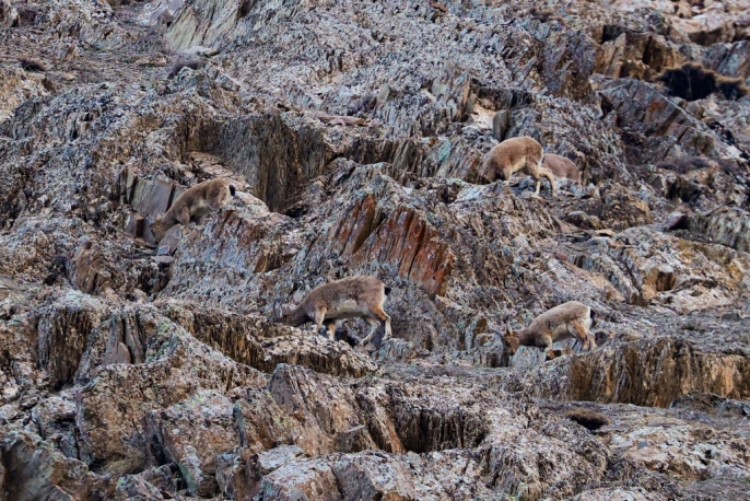 Hakkari'nin girişine yakın bir bölgede yaban keçileri sürü halinde beslenirken görüntülendi.