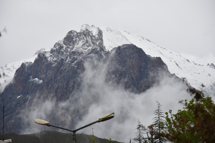 Hakkari'de kent merkezinde etkili olan sağanağın ardından yüksek kesimlere kar yağdı.