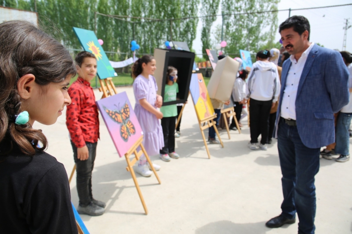 Yapılan sergide büyük bir emeğin olduğunu ifade eden İlçe Milli Eğitim Müdürü Necdet Bozyel, “Bugün burada bulunmamızın sebebi, ilçemiz Mehmet Akif Ersoy İlkokul öğrencilerimizin ve öğretmenlerinin hazırladığı resim sergisinde bir araya gelmekti. İlçe Halk Merkezi bünyesinde açtığımız kurs üç aylık bir süre sonrasında çok ciddi bir emek ortaya çıktığını gördük. Bugün burada yağlı boya, guaj boya, Kuru kalem çalışmasını çok güzel bir şekilde sergilemişler. Şimdiki küçük çocuklarımızın ileri zamandaki büyük yetenekleri şeklinde görebiliriz. Sergide emeği geçen öğrenci ve öğretmenlerimizi tebrik ediyorum” ifadelerini kullandı.