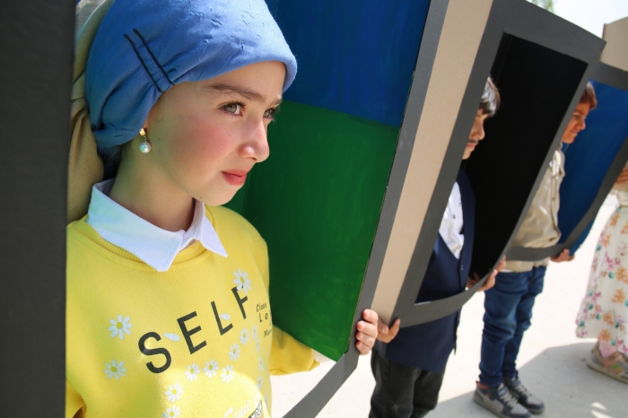 Yoğun ilgi gören sergide öğrenciler, Salvador Dali, Picasso, İnci Küpeli Kız, Frida Kahlo Van Gogh gibi dünyaca ünlü Sanatçılar ve eserler canlandırıldı.