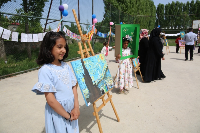 ALPARSLAN DİYARI- Hasköy ilçesindeki Mehmet Akif Ersoy İlkokulunda resim kursu öğretmeni Seher Alkış'ın organize ettiği ve dünyaca ünlü ressamların tanıtıldığı resim sergisi yapıldı. Sergide, ressamların eserleri farklı tekniklerle çizilerek öğrenciler tarafından canlandırıldı.