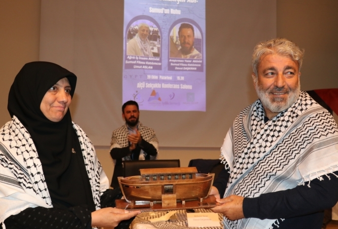 İyilik Öncüleri Kulübü ve İyilik Derneğince, Ağrı İbrahim Çeçen Üniversitesi Kültür ve Kongre Merkezi'nde Gazze'ye insani yardım için yola çıkan Küresel Sumud Filosu’nda bulunan aktivist Aslan ve Daşkıran'ın katılımıyla "Gazze'de Direnişin Adı Sumud'un Ruhu Konferansı" yapıldı. Aslan, burada yaptığı konuşmada 31 Ağustos'ta Tunus'a gittiklerini, filonun yarısından fazlasının geri dönmek zorunda kaldığını ve daha sonra Yunanistan'ın Girit Adası'ndan bir tekneyle filoya katıldıklarını söyledi.
