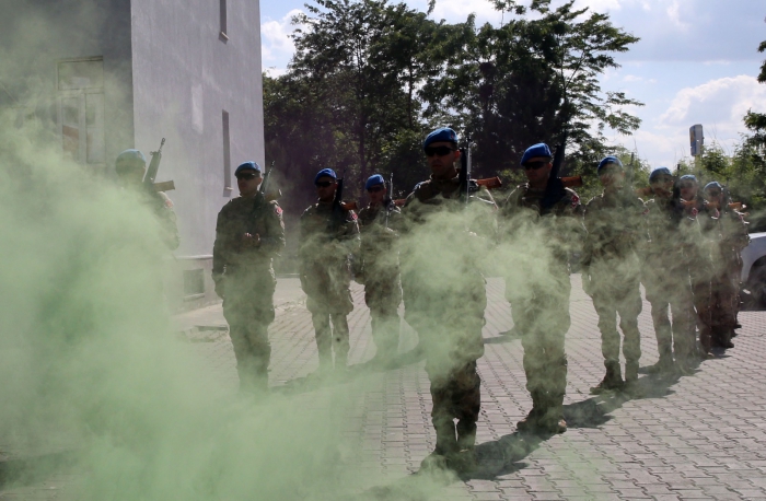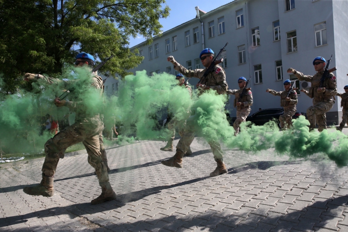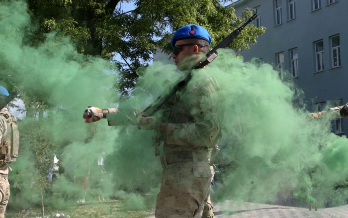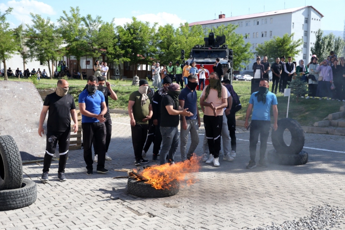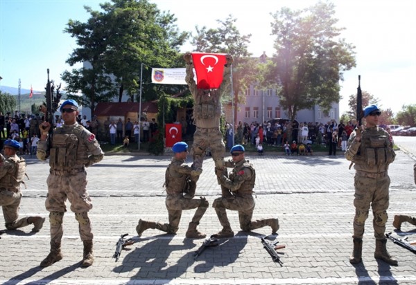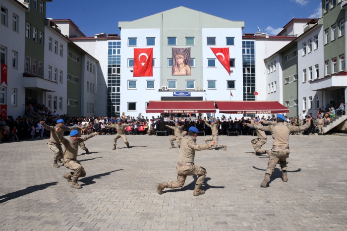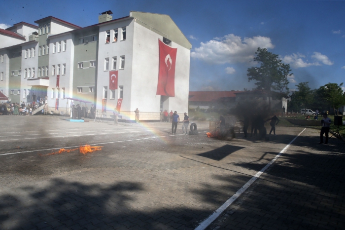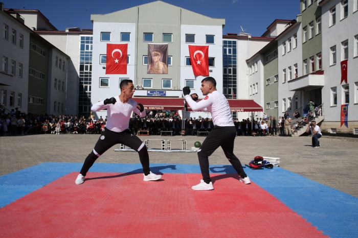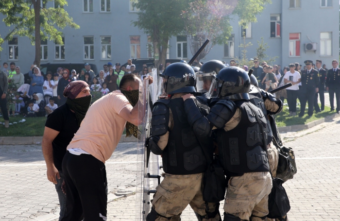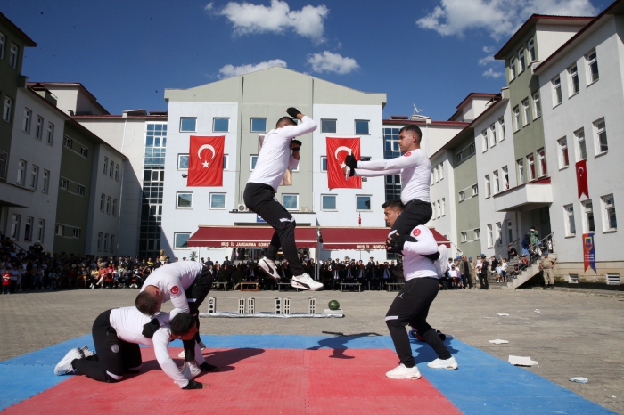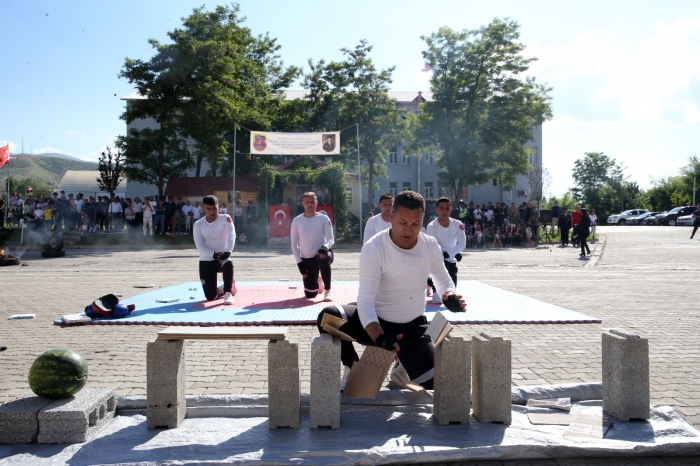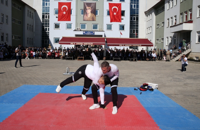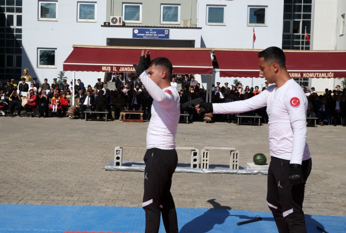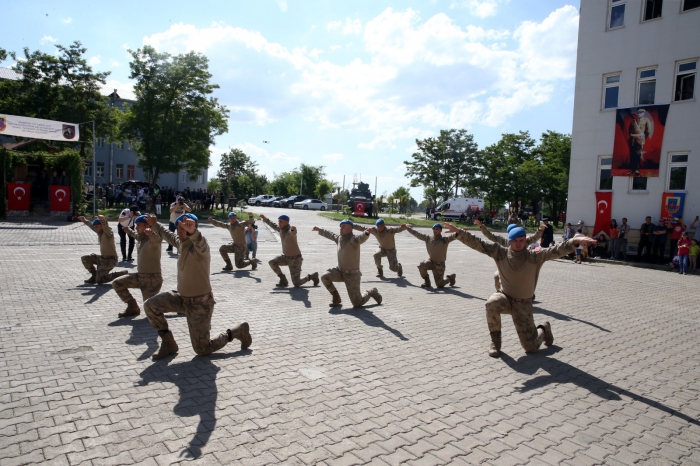 Konuşmaların ardından, zeybek oyunu, karate, senaryo gereği jandarma ekiplerinin bir grup eylemciye müdahale etmesi ve komandoların gösteri yürüyüşü törene katılanlar tarafından ilgiyle izlendi.