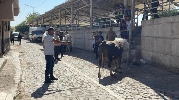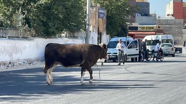 Eyyübiye Mahallesi'nde sabah saatlerinde, Halil Yıldırım'a ait kurbanlık boğa kesilmek istendiği sırada sahibinin elinden kaçtı. Çevredekilerin uğraşlarına rağmen boğa yakalanamadı.