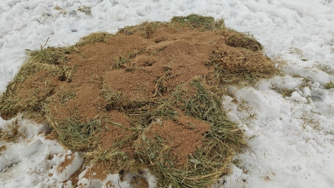 Kar altında kalan yaban hayvanları unutulmadı: Korkut'ta doğaya yem bırakıldı