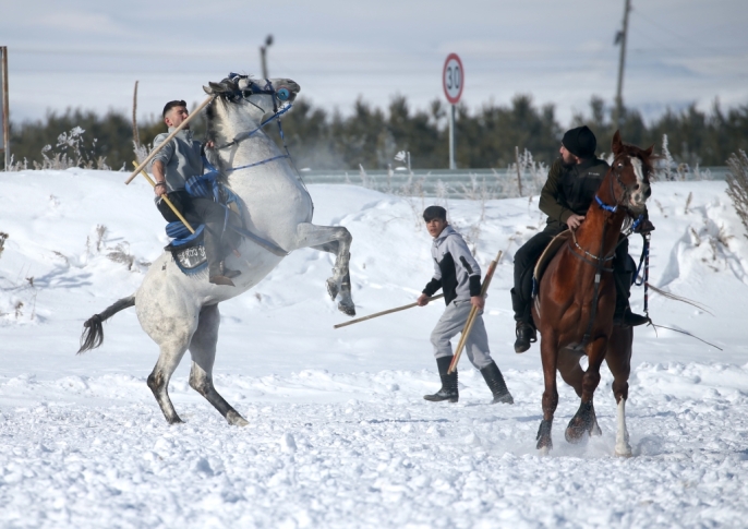 Kars'ta kar ve cirit buluşması: Ata sporu turizme can katıyor