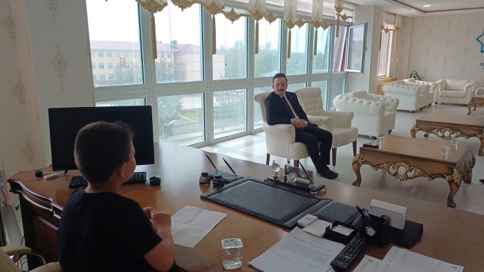 Öğrenci Hanzala Yusuf Fidan, kısa bir süreliğine kaymakam koltuğunda oturmanın heyecanını yaşarken, Kaymakam Bayram’a yönelik merak ettiği konuları sormaktan çekinmedi.