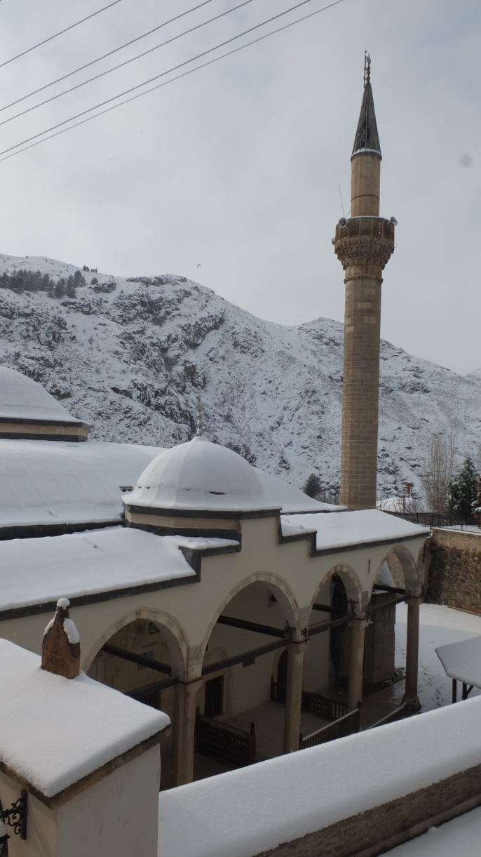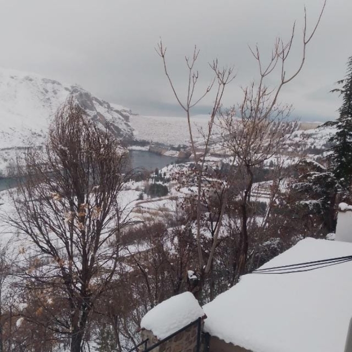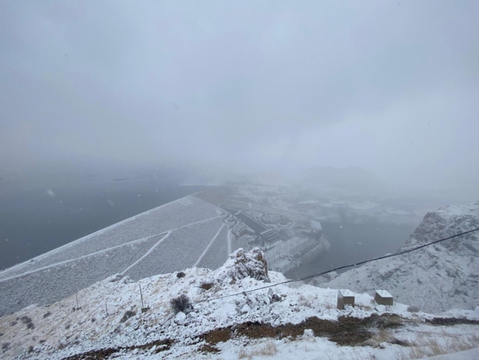 Kar yağışı nedeniyle Fırat Nehri üzerindeki Keban Barajı Hidroelektrik Santrali ve baraj gölü çevresi, ayrıca tarihi Yusuf Ziya Paşa Cami ve Külliyesi beyaz örtüyle kaplandı.