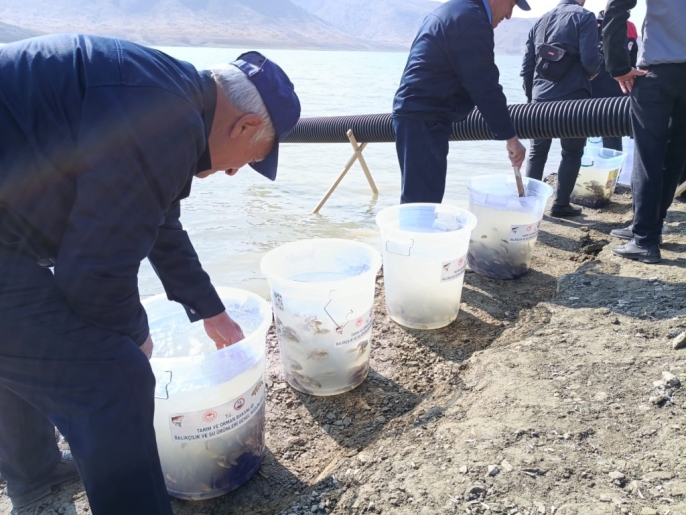 Elazığ'da bulunan Keban Su Ürünleri Üretim İstasyonu'nda üretilen 300 bin sazan yavrusu, Nahçıvan'da suya bırakıldı.