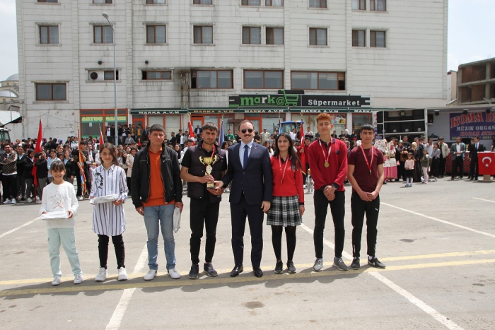 Öğrencilerin şiir okuduğu ve gösteri yaptığı programda yarışmalarda dereceye giren öğrencilere ödülleri verildi.