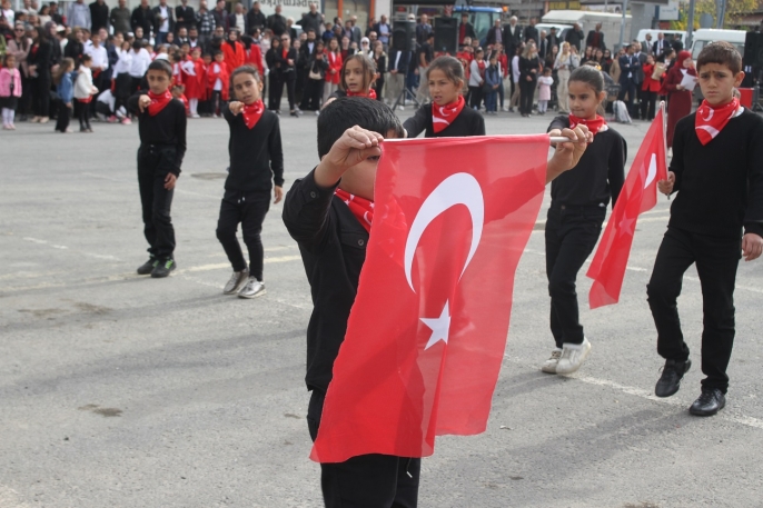 ALPARSLAN DİYARI_Cumhuriyet Meydanı’nda düzenlenen törende, saygı duruşu ve İstiklal Marşı’nın okunmasının ardından, Cumhurbaşkanı Recep Tayyip Erdoğan’ın mesajı okundu.