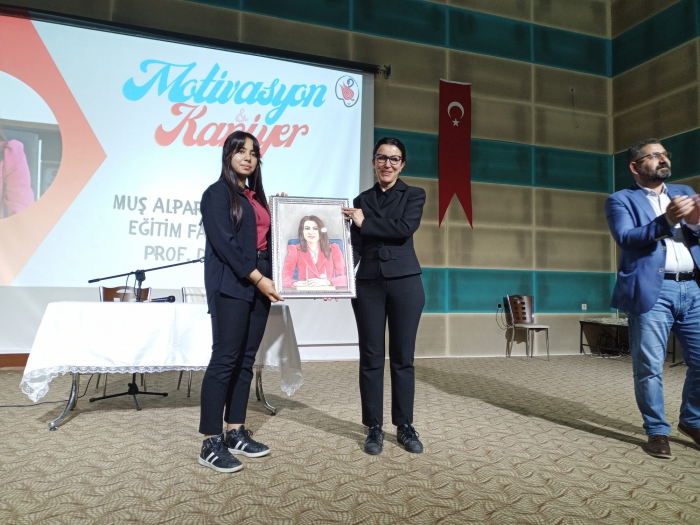 Muş Alparslan Üniversitesi Eğitim Fakültesi Dekanı Prof. Dr. Esin Kaya, "Bir akademisyen olarak da özellikle Kadın öğrencilerimize çalıştıkları zaman ileride nereye gelebildiklerini göstermek ve örnek olmak için onlarla buluştuk" dedi.