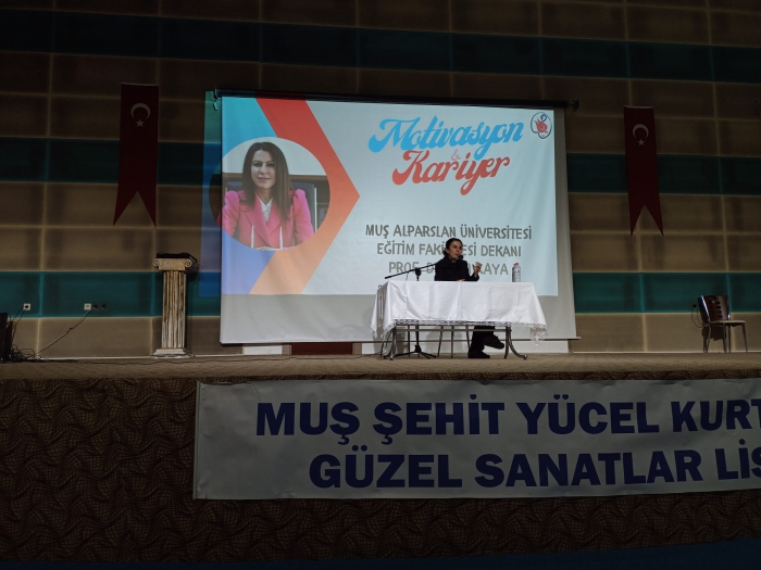 Eğitim Fakültesi Dekanı Prof. Dr. Esin Kaya, motivasyon ve kariyer seminerinde Şehit Yücel Kurtoğlu Güzel Sanatlar Lisesi öğrencileri ile buluştu.