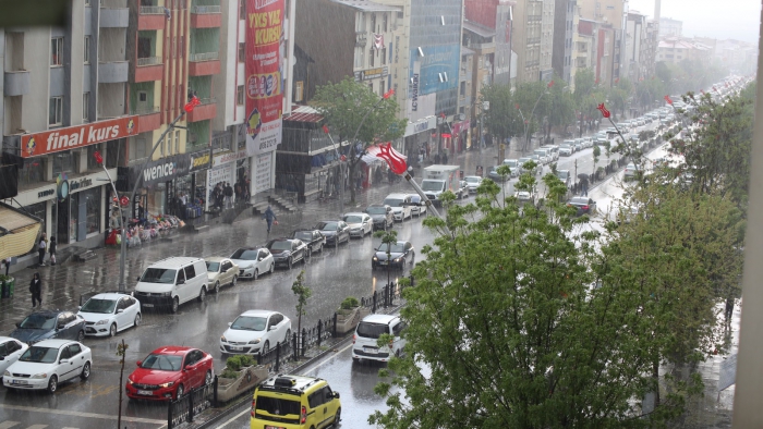 ALPARSLAN DİYARI- Muş’ta sağanak ve dolu yağışı yaşamı olumsuz etkiledi. Öğleden sonra başlayan sağanak, yerini doluya bıraktı. Yaklaşık 5 dakika süren dolu yağışı nedeniyle bazı yerlerde taşkınlar oldu, sürücüler trafikte zor anlar yaşadı.
