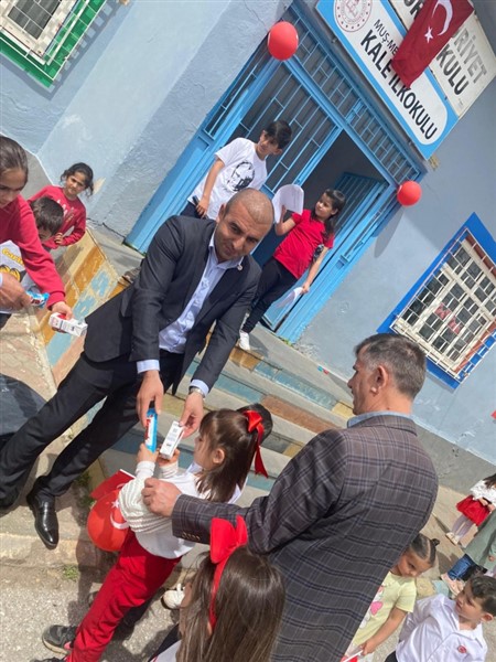 ALPARSLAN DİYARI- İki dönemdir Kale Mahallesi Muhtarlığı yapan Murat Aydın, dünyada çocuklara armağan edilmiş tek bayram olan 23 Nisan Ulusal Egemenlik ve Çocuk Bayramı nedeniyle mahalledeki çocuklara çeşitli hediyeler hazırladı. 23 Nisan’da da çocukları unutmayan Muhtar Aydın, Kale Mahallesi İlkokulu’nda çocuklara buluştu. Muhtar Murat Aydın’ın hediyeleri çocuklara bayram sevinci yaşatırken aileleri de mutlu etti.