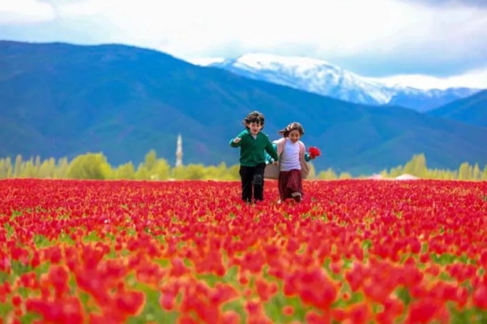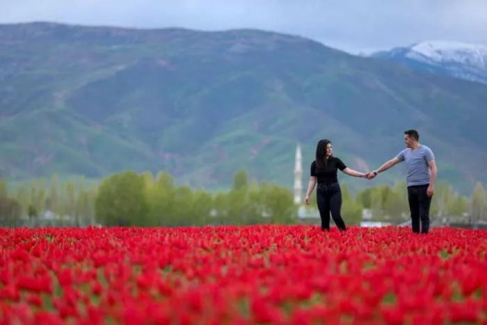 Muş Ovası'nda açan kırmızı mızraksı yapıya sahip laleler, seyrine doyumsuz manzaralar oluşturdu. Endemik bitki türleri arasında yer alan ve 'Muş 1071' ismiyle tescillenen laleler, canlılığını koruyabildiği 15 günlük sürede ziyaretçi akınına uğruyor. Muş laleleriyle kaplı ovalar, karlı dağlarla birlikte güzel görüntüler oluşturdu.