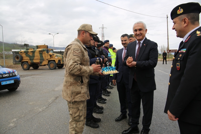 ALPARSLAN DİYARI- Muş Valisi Avni Çakır, bayramlaşma programı öncesinde, 112 Acil Çağrı Merkezi, polis ve jandarma uygulama noktalarını ziyaret ederek görevi başındakilerin bayramını kutladı. Vali Çakır, "Görev başında olan vatandaşlarımızı rahat ve huzur noktasında cansiperane bir şekilde fedakârca görev yapan arkadaşlarımızı da ihmal etmiyoruz.” dedi.