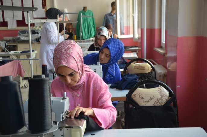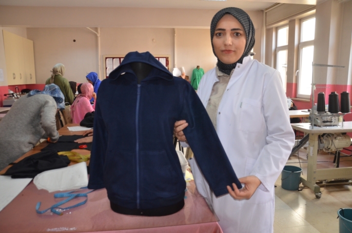 Muş Halk Eğitimi Merkezi'nde açılan giyim kursuna katılan 50 kadın kursiyer, "Çocuklar Üşümesin Projesi" kapsamında gönüllülük esasıyla hırka üretimine başladı.