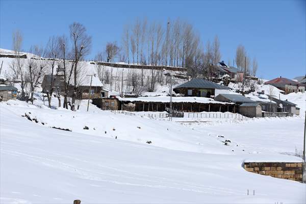 ALPARSLAN DİYARI- Muş'ta yüksek kesimlerdeki bazı köylerde son günlerde etkili olan yağışlarla tek katlı evler ve ahırlar karla kaplandı.