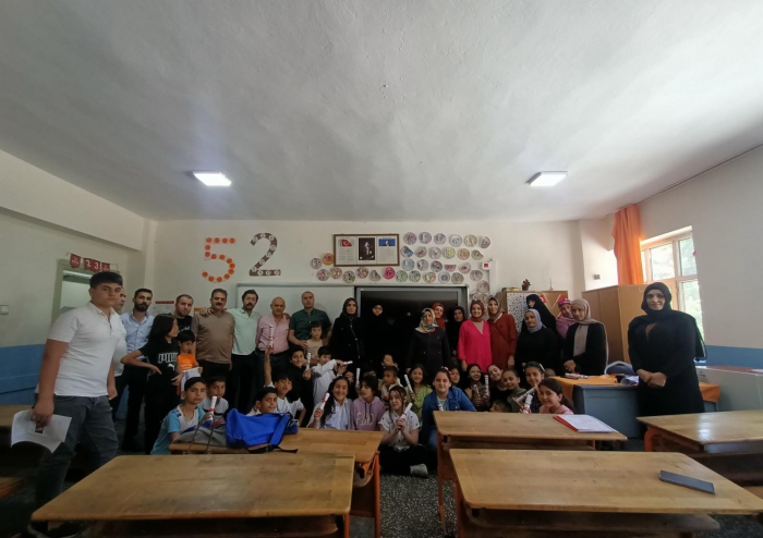 Öğrenciler öğretmen ve alileri ile birlikte hatıra fotoğrafı çektirdi.