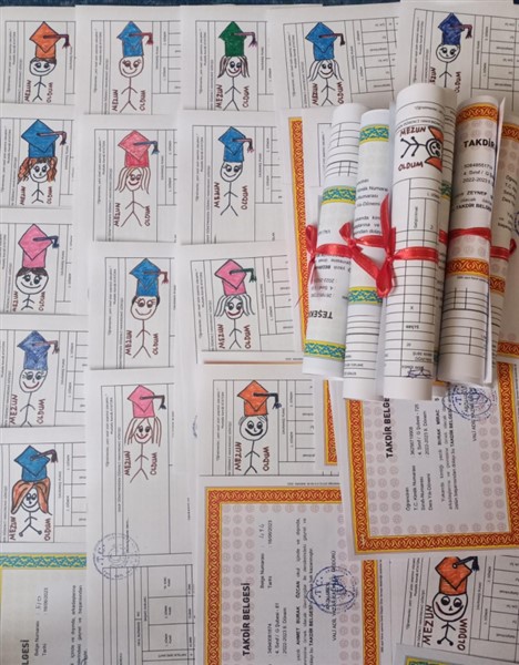 Mezuniyet törenine katılan veliler heyecanlı anlar yaşarken mezun olan öğrenciler ve öğretmen arasında duygulu anlar yaşandı.