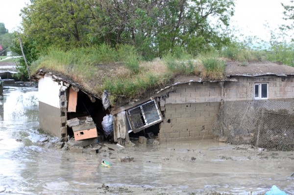 Muş merkeze bağlı bir köyde sağanak nedeniyle derenin taşması sonucu bir ev yıkıldı, 6 evi su bastı.